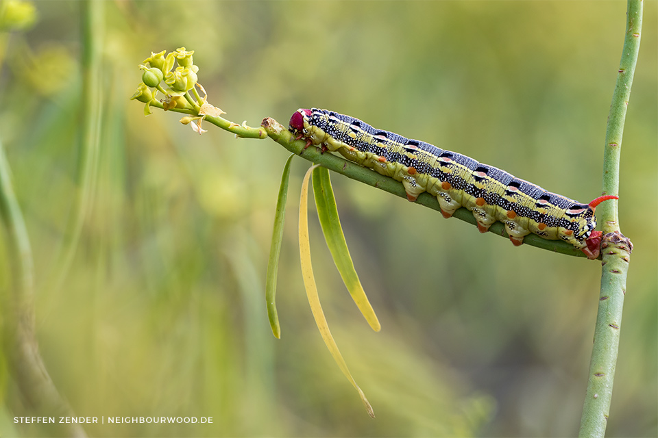 Mittelmeer Wolfsmilchschwärmer – Raupe Hyles tithymali phaelipae (La Palma)
